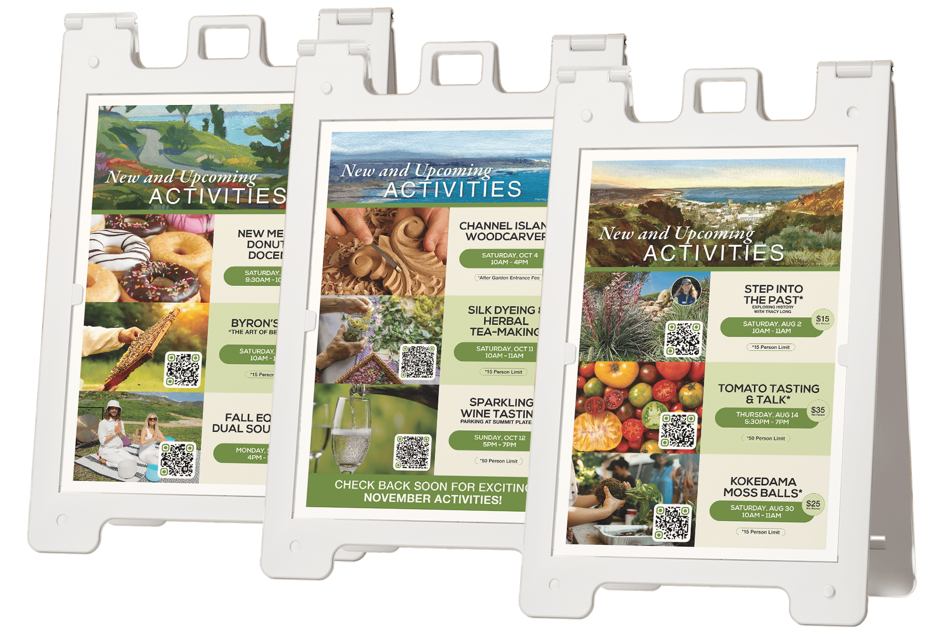 To keep visitors inspired to return, the Gardens also share new monthly “Upcoming Events” artwork on on-site A-frame signs, highlighting seasonal programs and activities with QR codes that make it easy to purchase tickets or see additional event information.